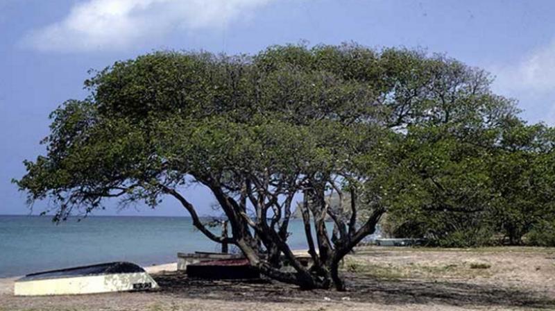 We left our happy Jost Van Dyke to sail to Little Jost Van Dyke to hike the trail to the bubbly pool. This is part of a rock formation between two islands that creates a jacuzzi pool. The waves roll in over some high rocks and then drop in to the pool where we sit and it creates a ton of bubbles. To get here we had to hike a short while with the warning, “Don’t touch the poison trees. The trail was dotted with manchineel trees that had warning signs. Every part of this tree is toxic Don’t eat the fruit, touch the leaves or bark, or even stand under it when it rains.